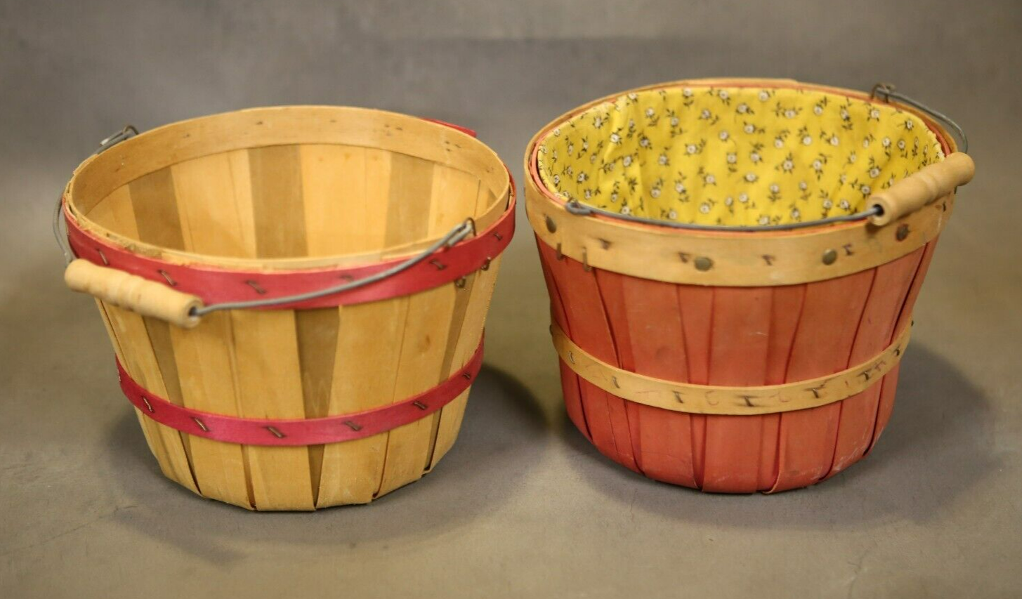 Vintage Farmhouse Garden Basket Red Bent Wood Metal Handle Planter Plant 9 034 Set Ebay